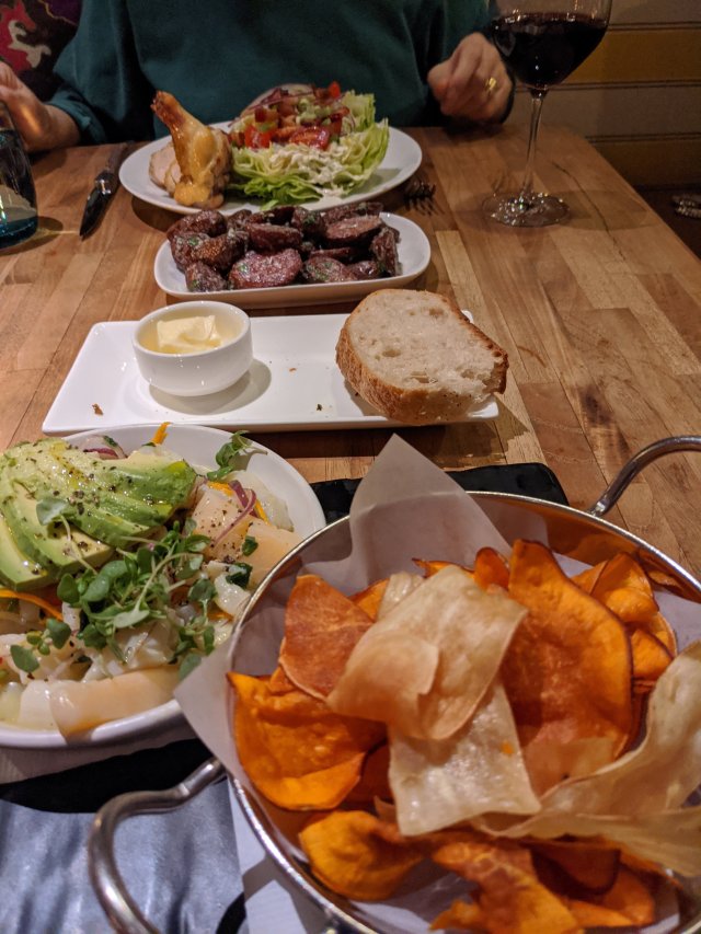 Dinner at Sams Place. Good American fare. Started with a dozen hog island oysters… the then there were none as I had eaten every one. The restaurant, as all so far, have been quiet enough to have a conversation, unlike the places at home.