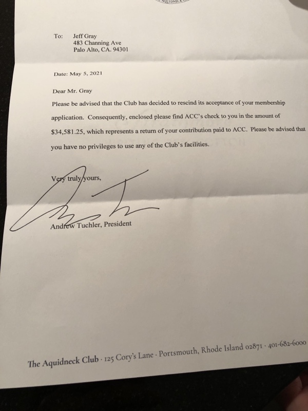 I strongly suspect it was caused by my complaining about some nickel and dime locker room key charges. As QB says, not our kind of people