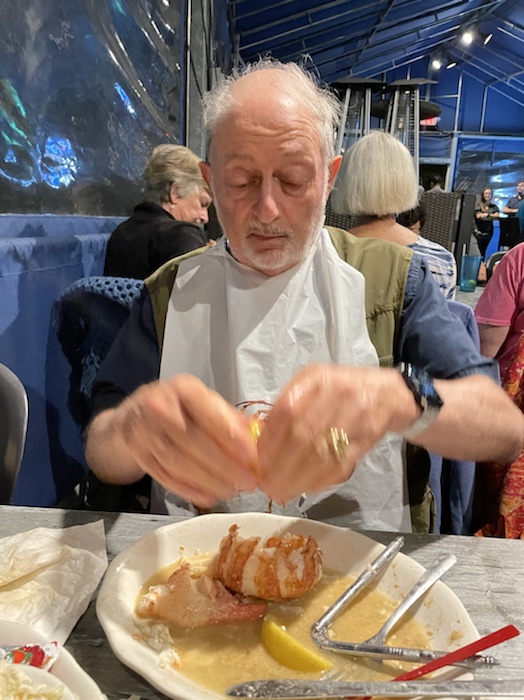 Breakfast at FoodLove and dinner at Quito’s. Jeff had a HUGE lobster (2 lbs). Sharon enjoyed also extremely large scallops meunière. Gelato for dessert.