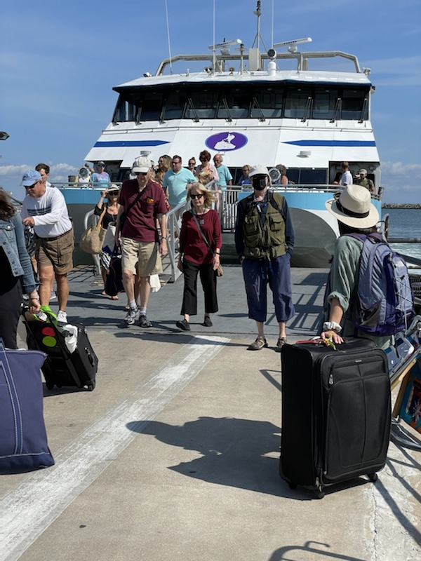 A warm day for an interesting trip to Block Island. High-speed ferry rental of bicycles, eating of ice cream. Upon return a hamburger at Joe’s with some of the crew