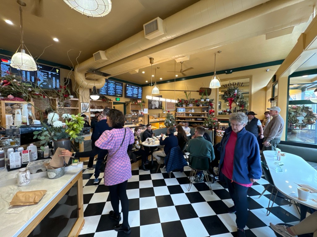 Breakfast at the Model Bakery, a place that QB remembers from the previous visit, and very famous. This one was allegedly remodeled, but it doesn’t look that way very much.