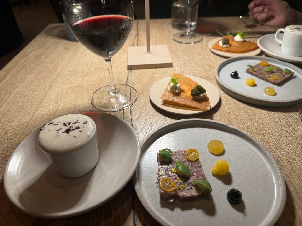 Afternoon cortado and macaronsNorth Block Hotel roomPost napHotel restaurant Mussels in a sauce made with nduja sausage; delicious More dinner