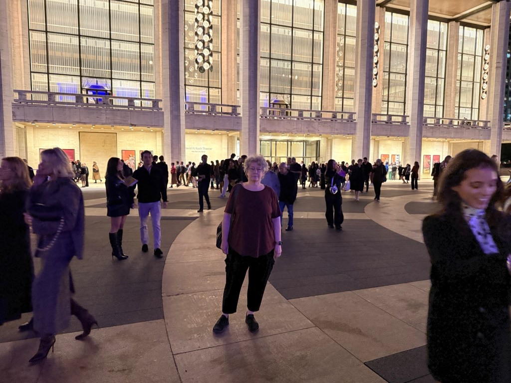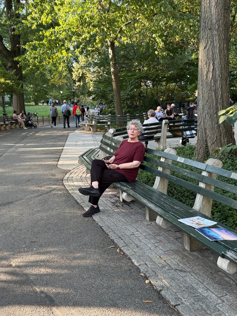 Park entrance. After the met, we decided to walk to Lincoln Center but have dinner first of course. Wonderful walk to the park so navigation done by Sharon took a fair amount of effort as the roads are windy and we’re going diagonally across. QB got us there, but she says not without difficulty