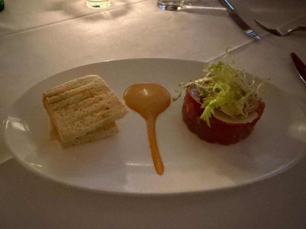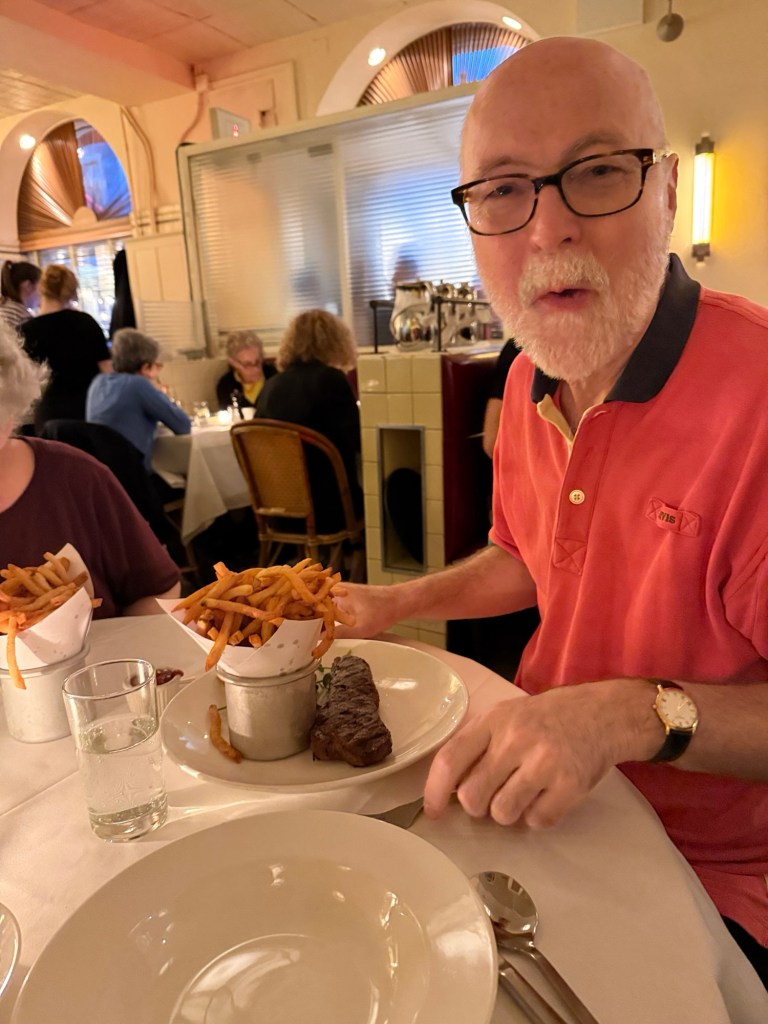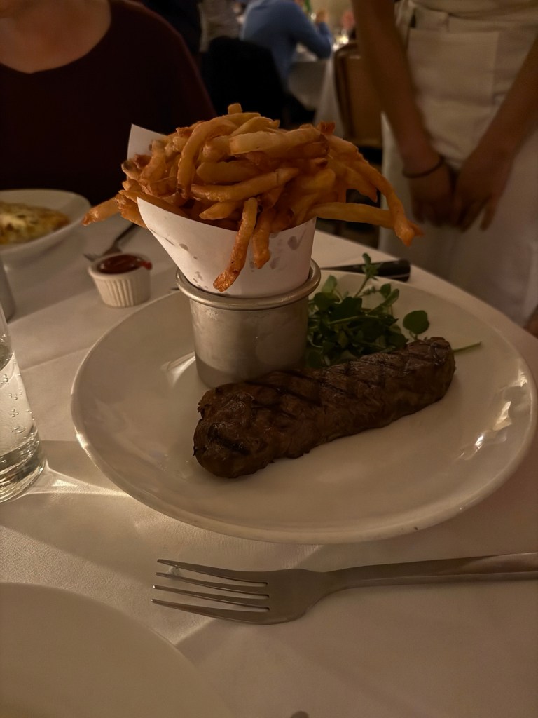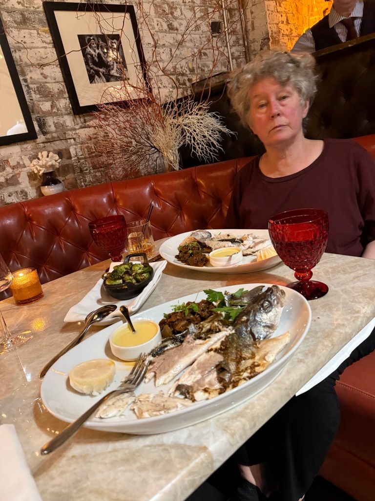 Dinner badly rushed because the kitchen was late and we had to leave by 7 o’clock to make the ballet. Left Neil still eating only partially through his steak.