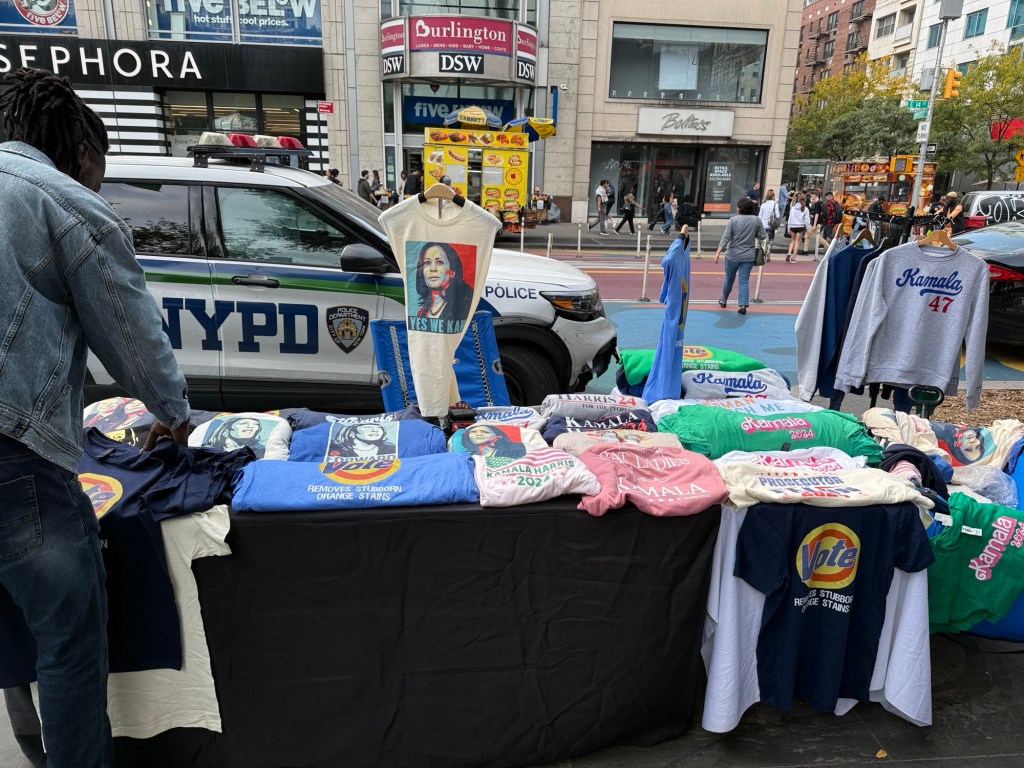 Walking through Union Square lots and lots of booths with K Harris paraphernalia