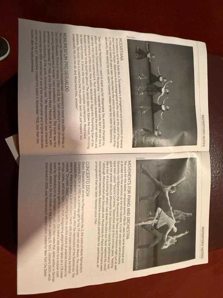 Last night’s ballet was a bigger success for me as I happen to like some of the Russian classical, less so for Sharon . She preferred Thursday night.