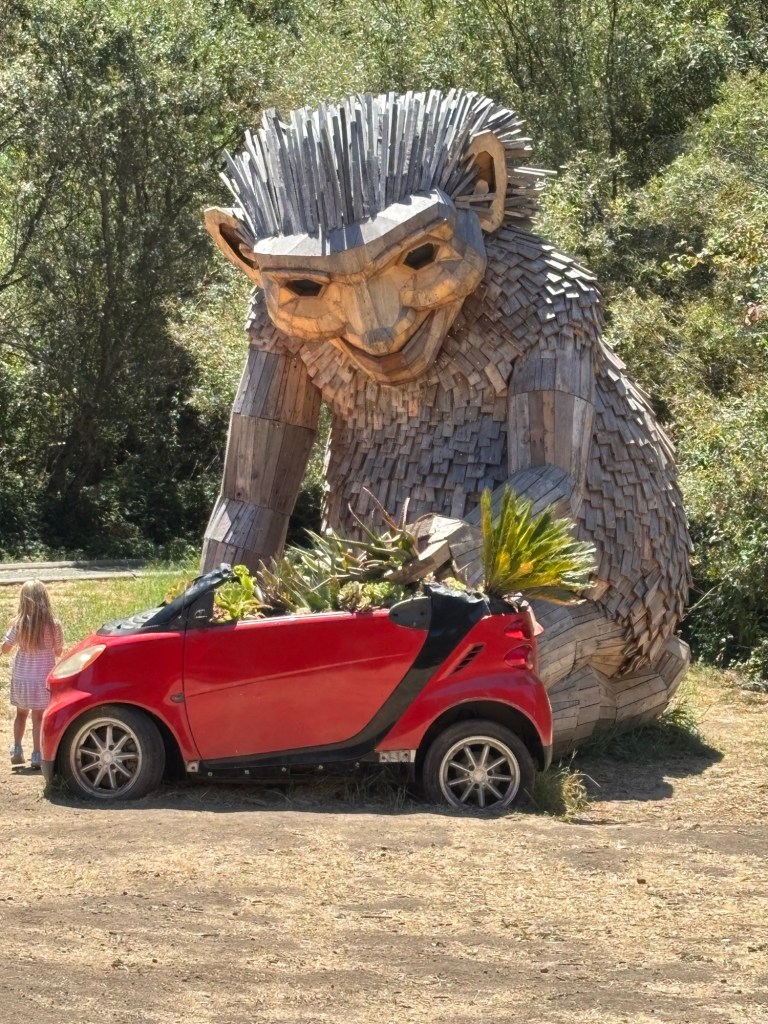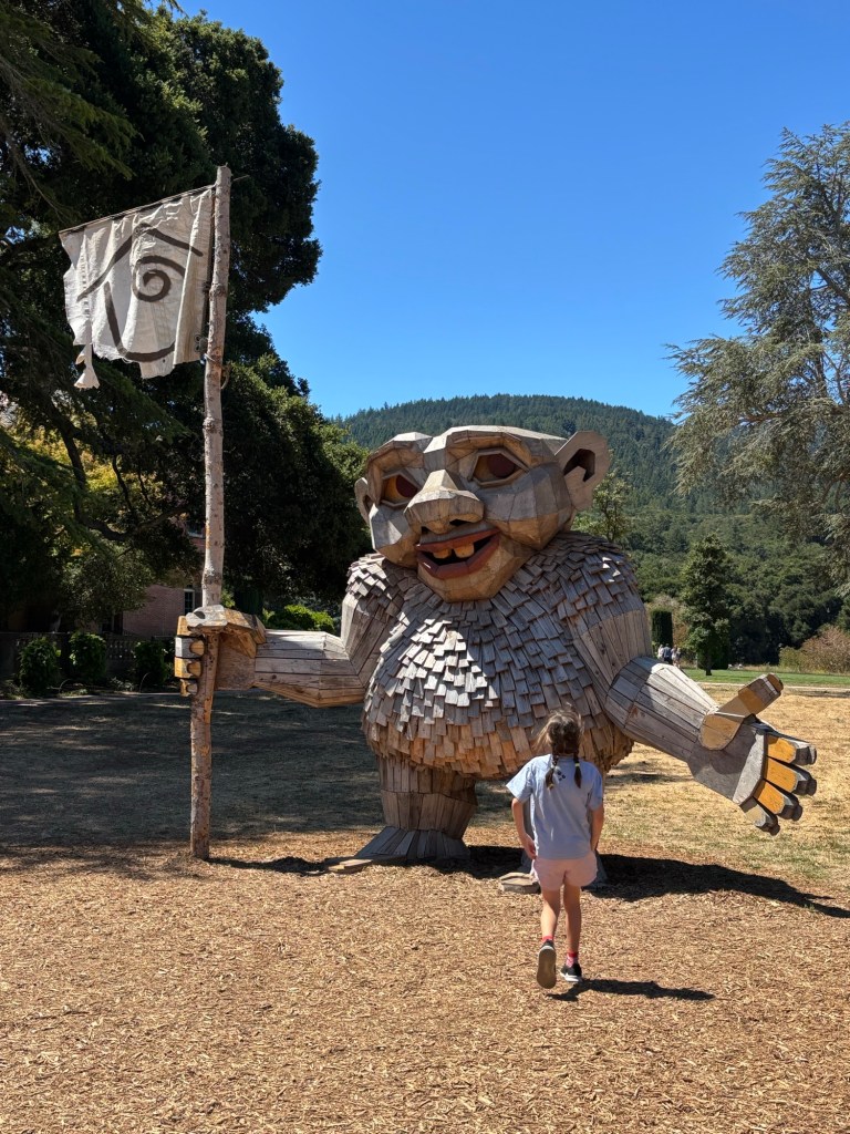 Six Thomas Dambo Trolls were recently installed at Filoli Gardens. We visited them as an Anniversary Adventure on a perfect NorCal summer day. Each Troll has a name and description nearby.