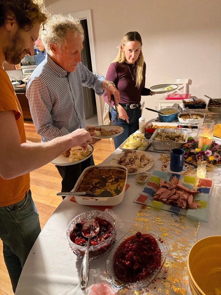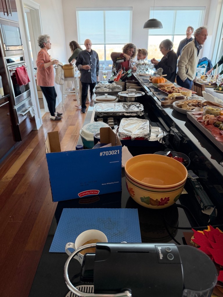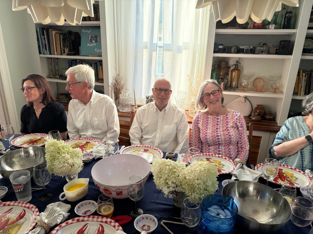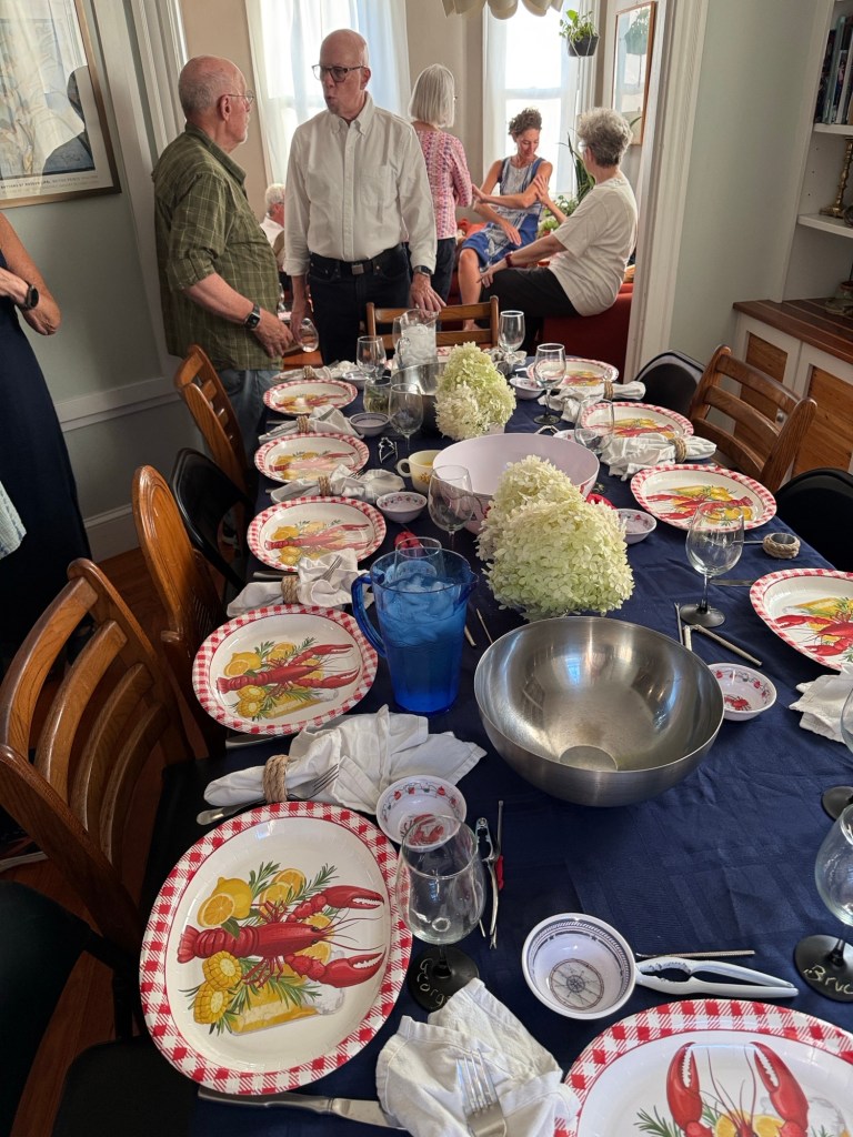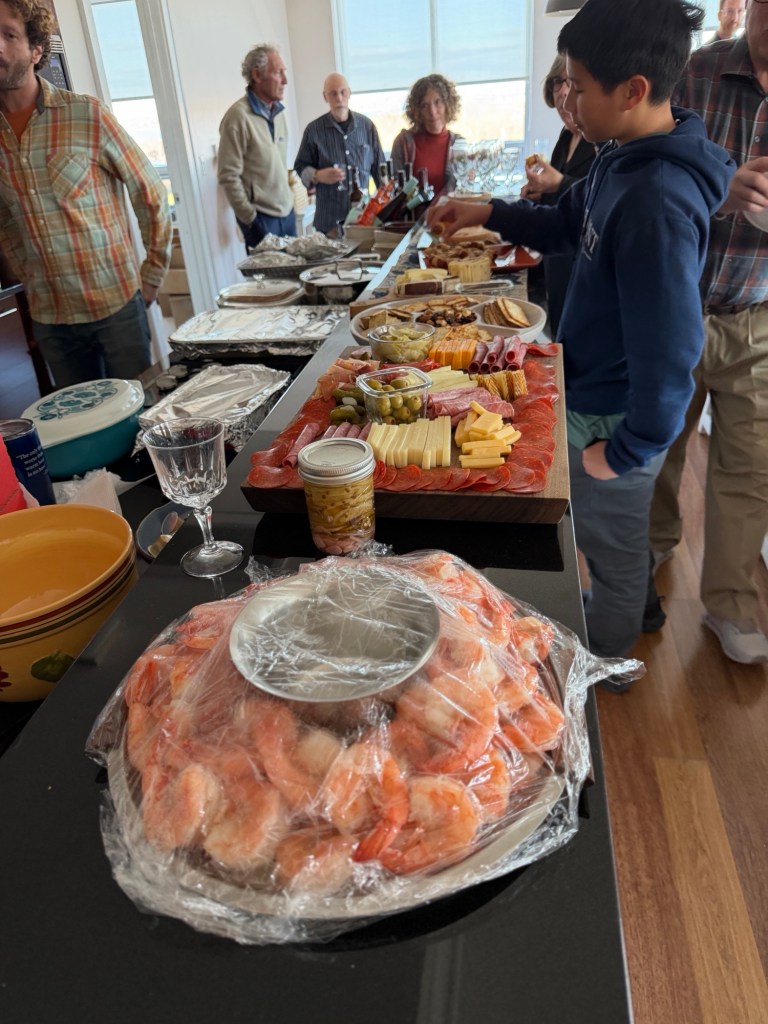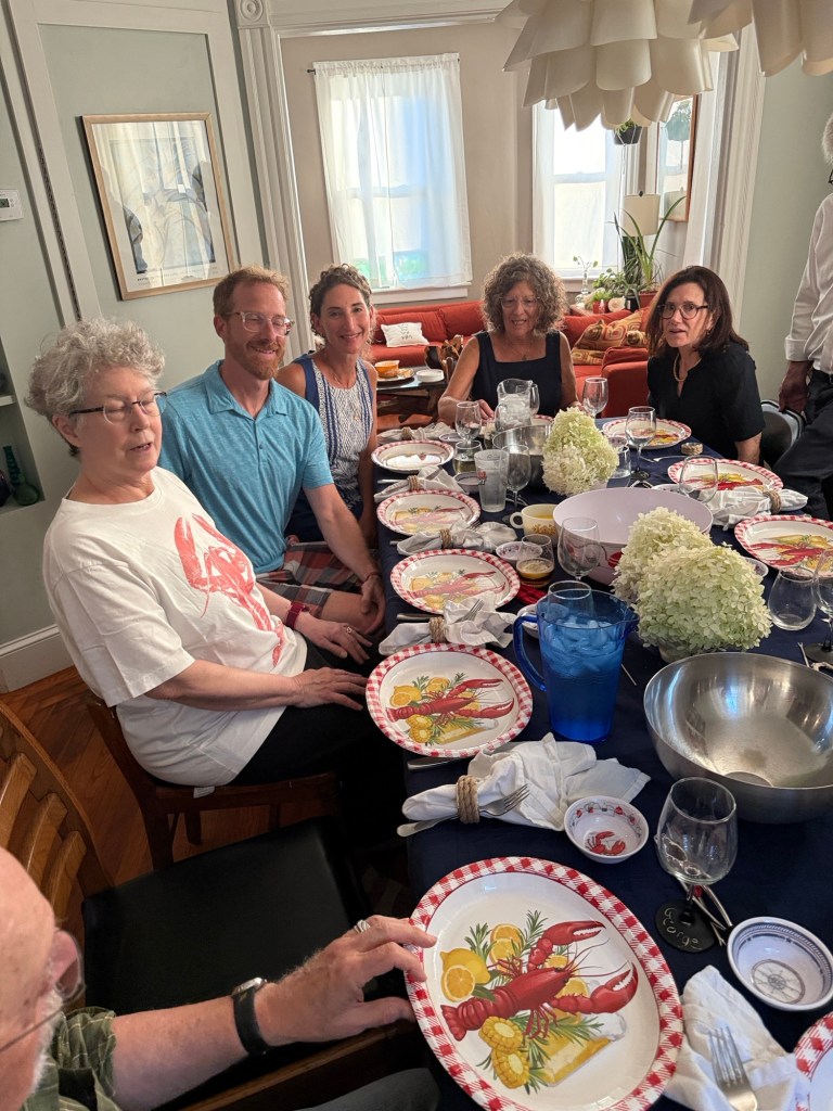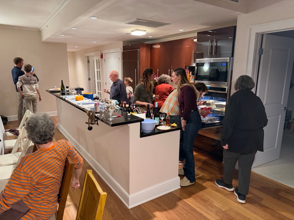 A gathering at the Eisenbergs in Newport to celebrate the start of Rosh Hashanah. Food (turkey x 2, soup with matzo balls, etc.) supplied primarily by Marcia. Brisket by George, desserts contributed by many recipes (including honey cake from Michelle and apple cake from Sharon).