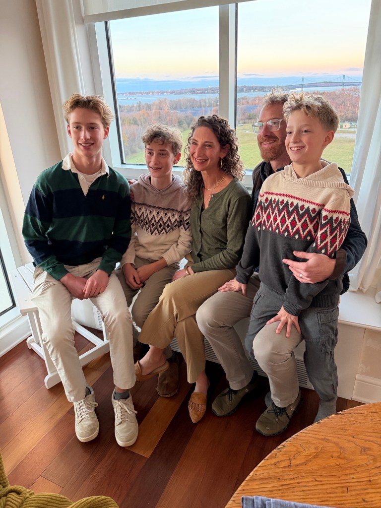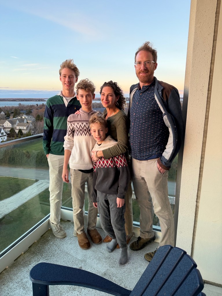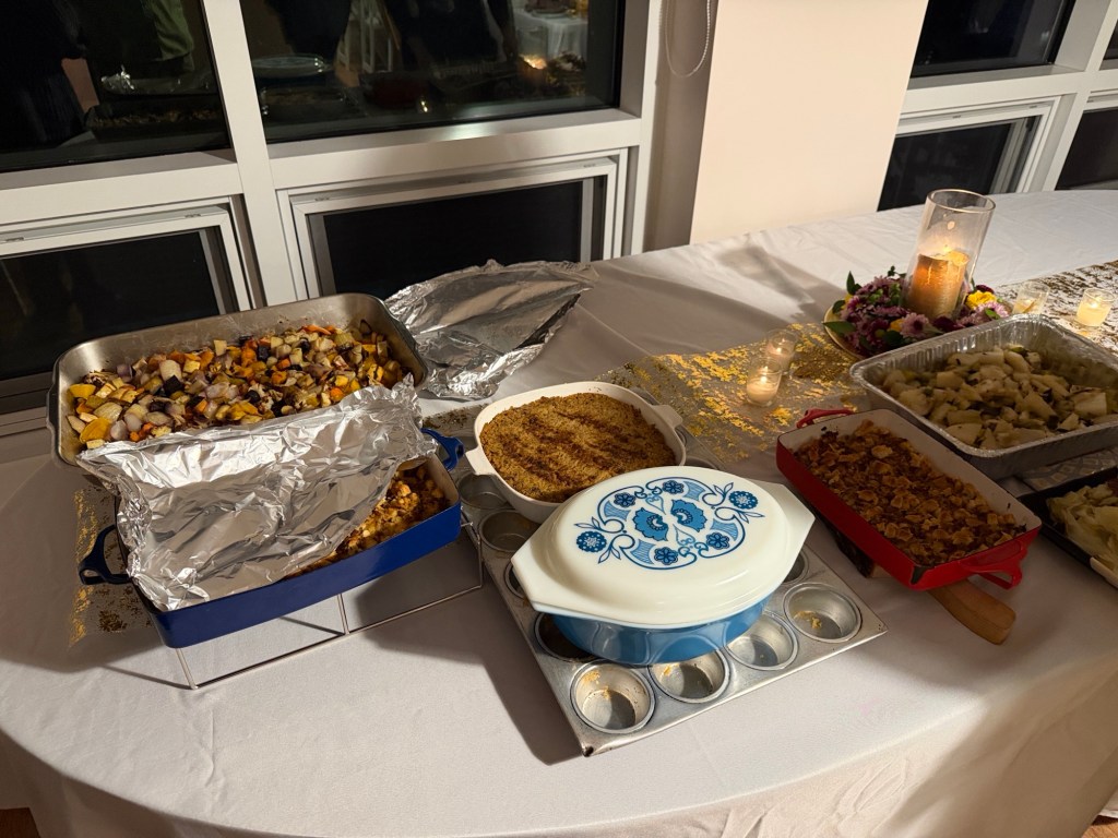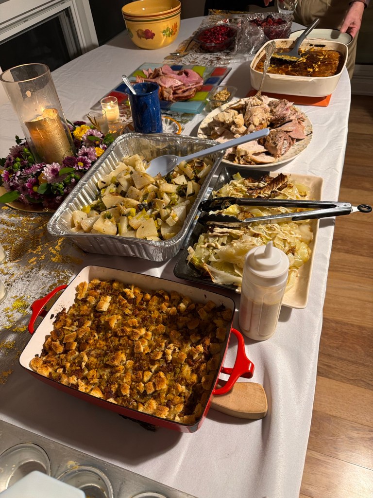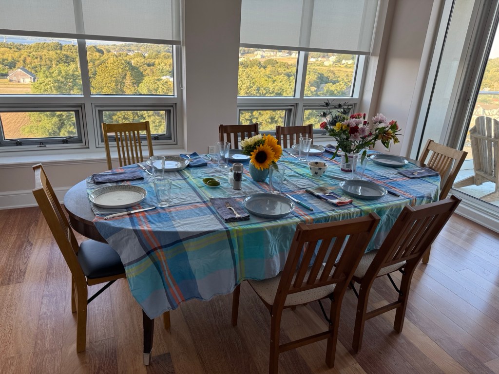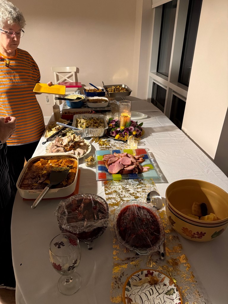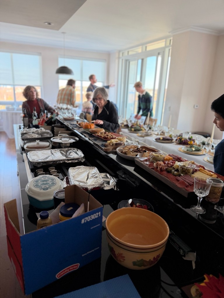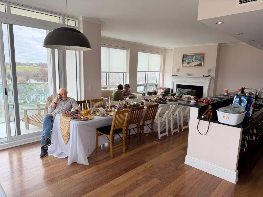 A gathering at the Eisenbergs in Newport to celebrate the start of Rosh Hashanah. Food (turkey x 2, soup with matzo balls, etc.) supplied primarily by Marcia. Brisket by George, desserts contributed by many recipes (including honey cake from Michelle and apple cake from Sharon).