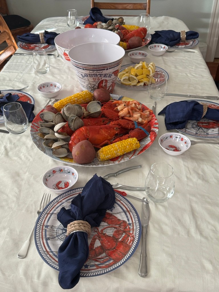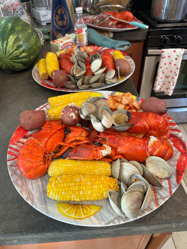 Hard shell clams, shrimp,potatoes, Per Se, and wonderful company.